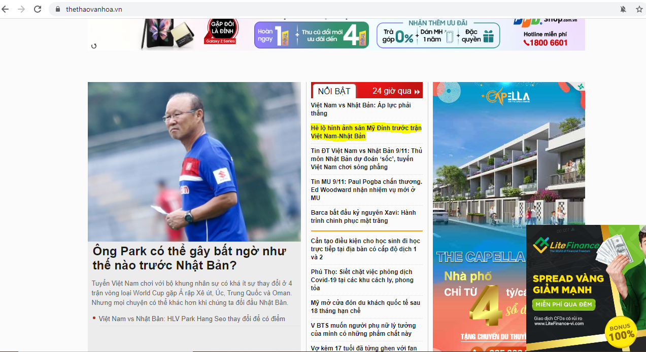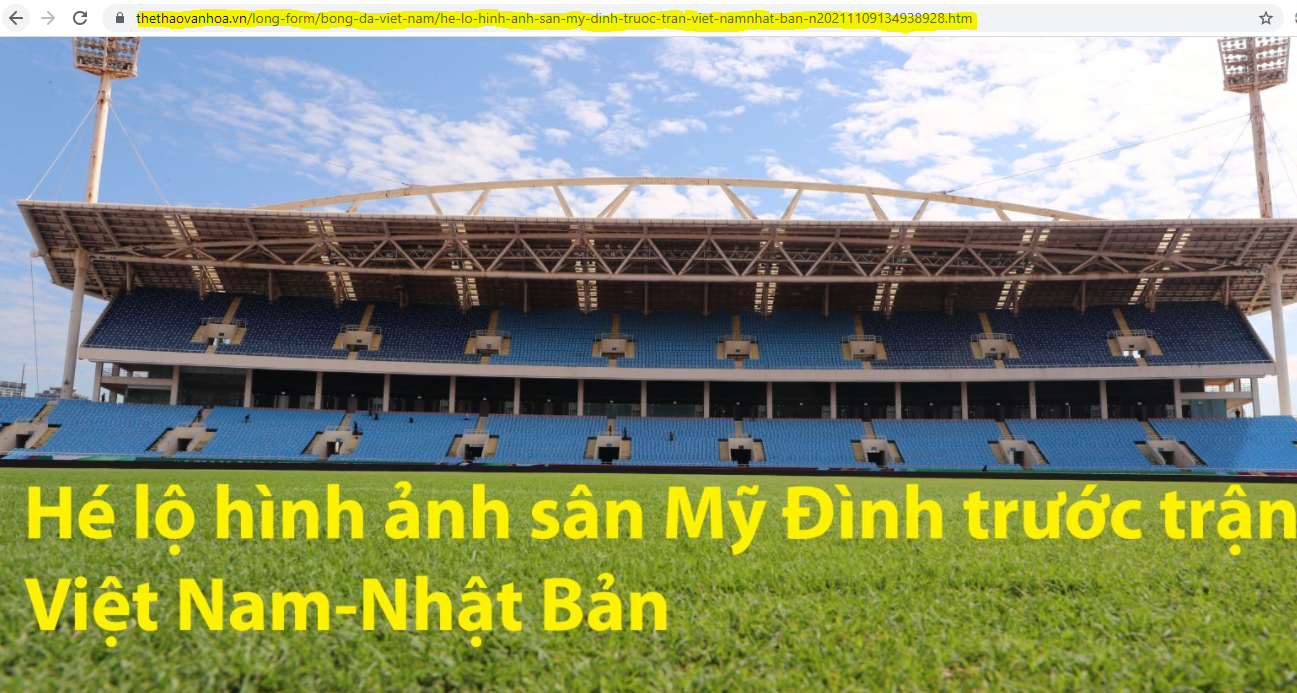- Bước 3: Truy cập một tin thể thao em muốn xem (Ví dụ: Hé lộ hình ảnh sân Mỹ Đình trước trận Việt Nam - Nhật Bản).
