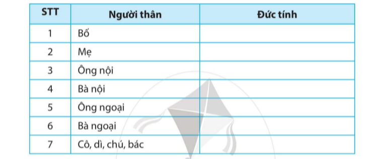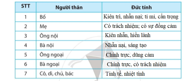 Hãy viết 2-3 từ nói về đức tính có liên quan đến nghề nghiệp của người thân.