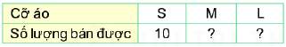 Hãy đếm xem cửa hàng đó đã bán được bao nhiêu chiếc áo mỗi cỡ rồi thay các dấu “?” bằng số liệu thích hợp trong bảng sau: