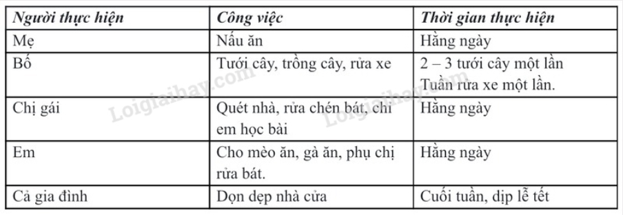Ví dụ về cách tổ chức, sắp xếp công việc trong gia đình em như sau: