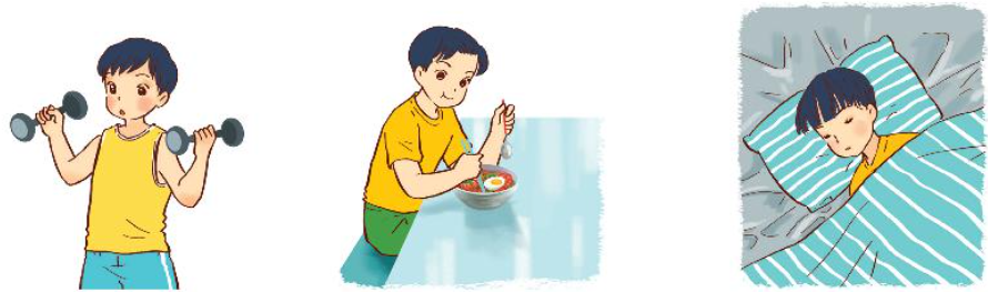 Quan sát hình ảnh và chia sẻ với bạn về cách chăm sóc sức khỏe thể chất của em.