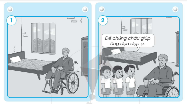 2. Ba bạn nhỏ Nam, Lan, Hoa sống ở gần nhà ông. Sau giờ học, ba bạn rủ nhau sang nhà ông chơi để ông đỡ buồn rồi giúp ông dọn dẹp nhà cửa.