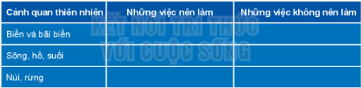 Thảo luận để xác định những việc nên làm và không nên làm nhằm bảo tồn một số cảnh quan thiên nhiên theo gợi ý: