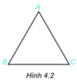 Cho tam giác đều ABC như hình 4.2. 1. Gọi tên các đỉnh, cạnh góc của tam giác đều ABC. 2. Dùng thước thẳng để đo và so sánh các cạnh của tam giác ABC. 3. Sử dụng thước đo góc để đo và so sánh các góc của tam giác ABC. |