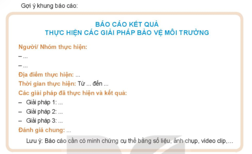 Viết báo cáo kết quả thực hiện các giải pháp bảo vệ môi trường tự nhiên.