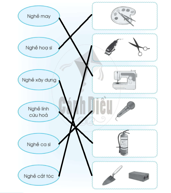 - Sau đó nối tên nghề với dụng cụ lao động phù hợp.