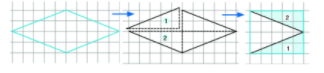 Vẽ hình thoi trên giấy kẻ ô vuông và cắt, ghép thành hình chữ nhật.