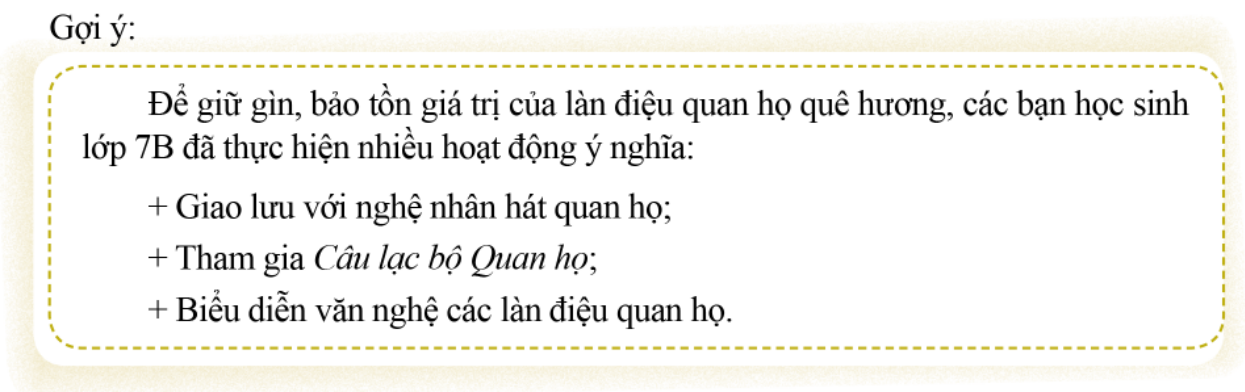 Thảo luận về cách em và các bạn giữ gìn, phát huy truyền thống tự hào ở địa phương.