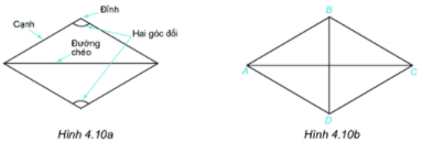 Quan sát hình thoi ở hình 4.10a.