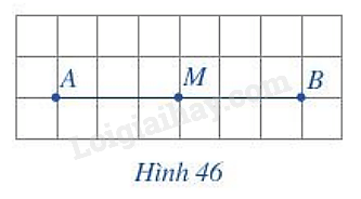 Quan sát đoạn thẳng AB trên giấy ô vuông (Hình 46). Gấp giấy sao cho điểm B trùng vào điểm A. Nếp gấp cắt đoạn thẳng AB tại điểm M. Hãy so sánh hai đoạn thẳng MA và MB.
