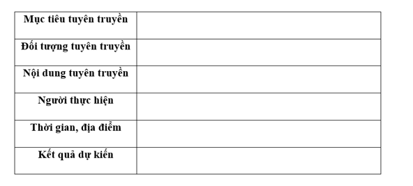Em hãy lựa chọn một nội dung tuyên truyền về văn hoá ứng xử nơi công cộng và xây dựng kế hoạch tuyên truyền cho nội dung đó.