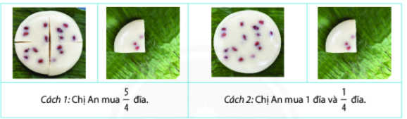 a) Chị An mua 5 phần bánh, được người bán lấy cho một đĩa và một phần, có đúng không?