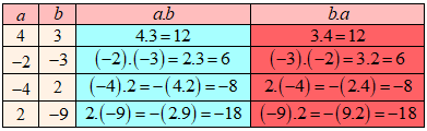 Sử dụng quy tắc nhân hai số nguyên cùng dấu cho 2 tích đầu tiên, quy tắc nhân hai số nguyên khác dấu cho 2 tích cuối cùng.