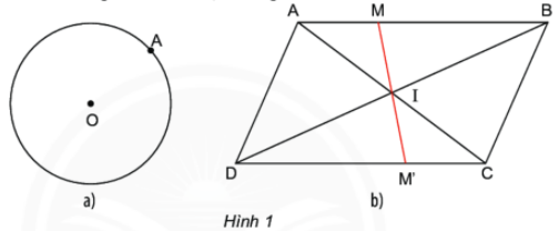 b) Cho hình bình hành ABCD, hai đường chéo AC và BD cắt nhau tại I. Đường thẳng qua I cắt AB tại M và cắt CD tại M. Đo rồi so sánh độ dài IM và IM (Hình 1b).