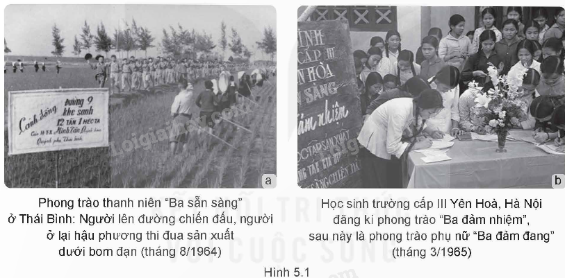 Hình 5.1a: Người lên đường chiến đấu, người ở lại hậu phương thi đua sản xuất dưới bom đạn, (tháng 8/1964), sau khi Mỹ mở rộng đánh phá bằng không quân ra miền Bắc trong kháng chiến chống Mỹ, cứu nước.