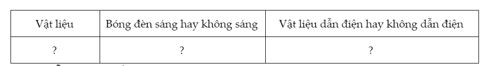 Hãy quan sát hiện tượng khi thực hiện thí nghiệm và điền kết quả quan sát được theo mẫu bảng sau: