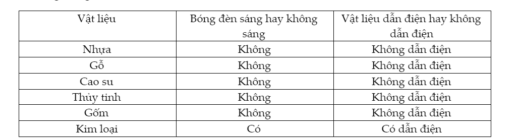 Lần lượt kẹp từng đồ vật vào hai chiếc kẹp. Nếu đèn sáng thì vật liệu đó dẫn điện. Nếu đèn không sáng, vật liệu đó không dẫn điện (cách điện)
