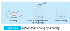 Ví dụ: khi hòa tan đường vào trong nước, sau khi khuấy đều chúng tạo thành hỗn hợp đồng nhất chứa nước và đường. Trong đó