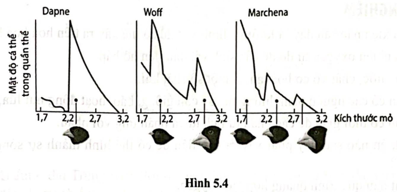 Kích thước mỏ của chim sẻ đất Galápagos (Geospiza) thích nghi với việc ăn hạt. Do sự đa dạng về kích cỡ hạt của các loài thực vật nên mật độ cá thể của quần thể chim sẻ ở các đảo khác nhau, hình dạng và kích thước mỏ các loại chim cũng có khác biệt tương ứng được mô tả như hình 5.4.