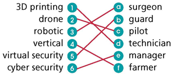 a. surgeon b. guard c. pilot d. technician e. manager f. famer |