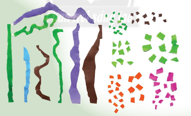 - Dùng giấy màu, giấy báo …. xé thành các chấm, nét theo ý thích