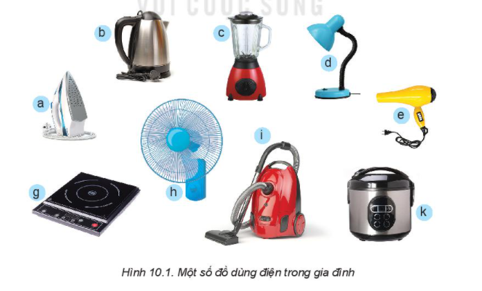Nêu tên gọi và cho biết công dụng của những đồ dùng điện trong Hình 10.1