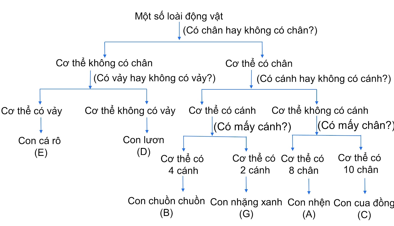Sơ đồ phân loại một số loài động vật dựa vào khóa lưỡng phân