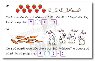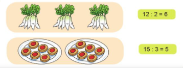 Xem tranh rồi nói phép chia (theo mẫu):