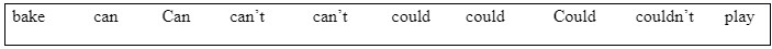 (Viết câu với can / can’t, could / can’t và các từ trong bảng sau.)