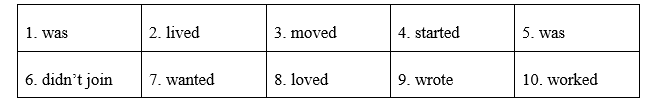 (Hoàn thành tiểu sử bằng cách sử dụng hình thức quá khứ đơn giản của động từ.)