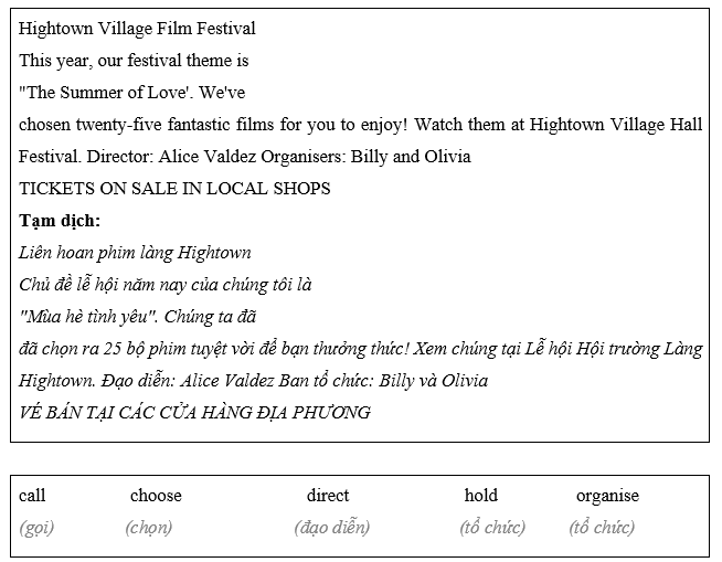 (Đọc áp phích cho Liên hoan phim Làng Hightown. Viết câu hỏi cho câu trả lời. Sử dụng đúng dạng thụ động quá khứ của động từ.)