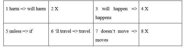 And 2 if ………… that 3 will happen ………….., one day we'll need to go and live on another planet. What 4 will …………. we do 5 unless …………… we don't develop the technology in time? If we 6 'll travel …………… to Mars, we'll need to produce our own water and air. Unless technology 7 doesn’t move ………….. a lot faster, we 8 won’t be …….. ready to leave the Earth for a very long time.