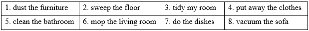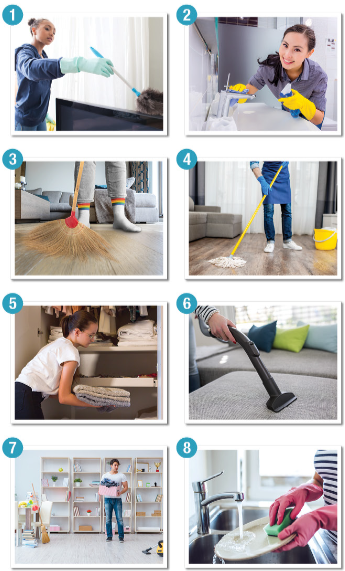 (Nghe và đánh số các công việc nhà theo thứ tự bạn nghe thấy.)