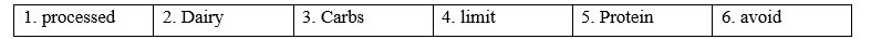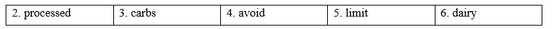 (Viết về các loại thực phẩm bạn ăn, hạn chế và tránh, và tại sao. Sử dụng các từ mới trong bài học này và ý tưởng của riêng bạn. Viết 100-120 từ.)
