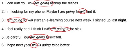 b. Fill in the blanks with the correct form of be going to or will.