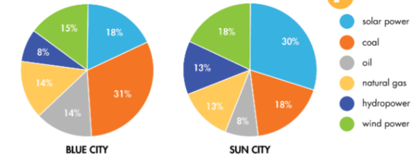 Sun City sử dụng nhiều năng lượng gió hơn Blue City.)