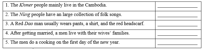 4. New Year is an important festival for the Khmer people. (Năm mới là lễ hội quan trọng của người Khmer.)