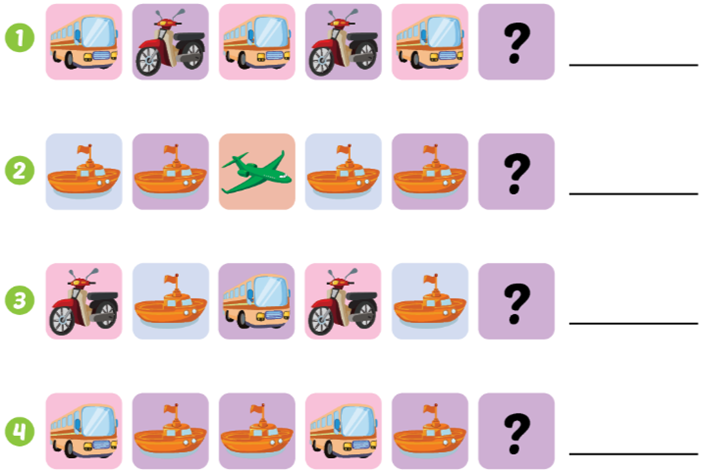 (Tiếp theo là cái gì? Nhìn, đọc, và viết các từ.)
