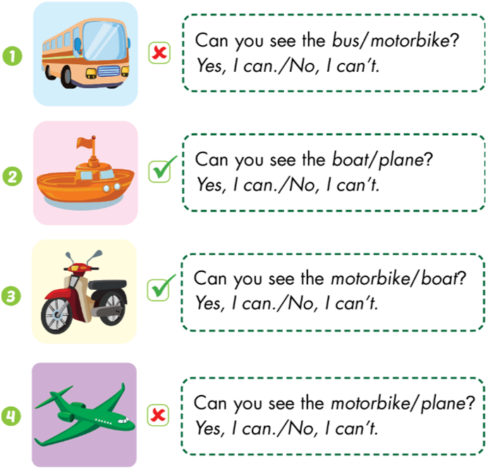 3. Can you see the motorbike? – Yes, I can.