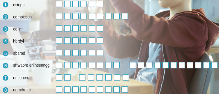 a. Unscramble the words. b. Fill in the blanks using the words from Task a. a. Listen to Kevin talking to his mom about what course he wants to study at university. Does his mom help him make a decision? b. Now, listen and circle True or False.