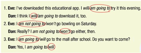 3. Eve: I am going to/will go to the mall after school. Do you want to come?