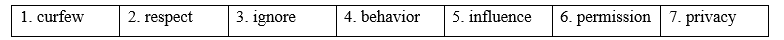 4. curfew _____ d. the way that somebody acts