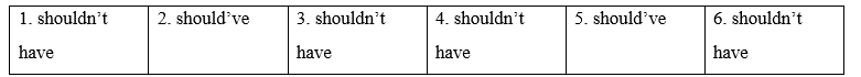 4. He should’ve/ shouldn’t have argued with his parents. Now, he’s in trouble.