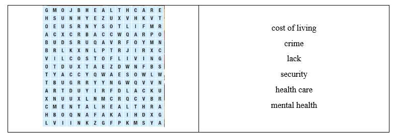 a. Find the words in the word search. b. Fill in the blanks with the words from Task a. a. Read about three cities. What type of text is this? b. Now, read and answer. a. Circle the correct words. a. Circle the correct words.