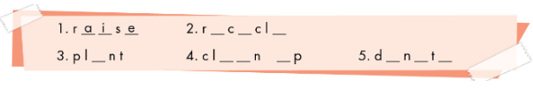 | 4. organised | 5. raised | 6. planted |