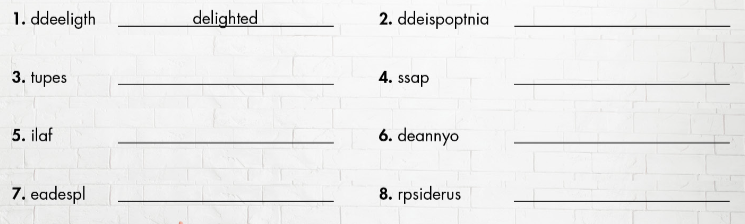 New Words a. Unscramble the words. b. Write the words from Task. a next to the correct meaning. Reading a. Read and circle the correct answer. The email is about:. b. Now, read and answer the questions. Grammar Unscramble the sentences. Writing: How do you feel about the following things at school? Write a sentence for each.