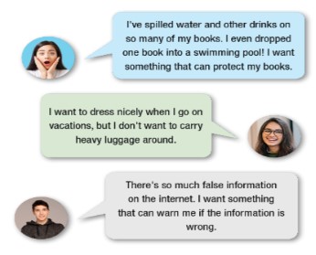 a. Listen and choose the correct answers.b. Now, listen and answer the questions.Grammar a. Fill in the blanks with the correct relative pronouns.b. Combine the sentences using defining relative clause. Writing Choose a problem below and write a paragraph about an invention that can help solve it. Write 120 to 150 words.