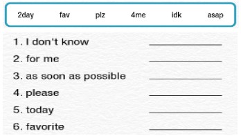 Using text language to shorten messagesRead about the text language, then rewrite the text messages with proper punctuation and spealling.Planning a. Prepare to write a message to a family member making