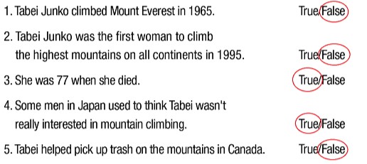 b. Now, listen to the conversation about Tabei Junko’s life and circle True or False.