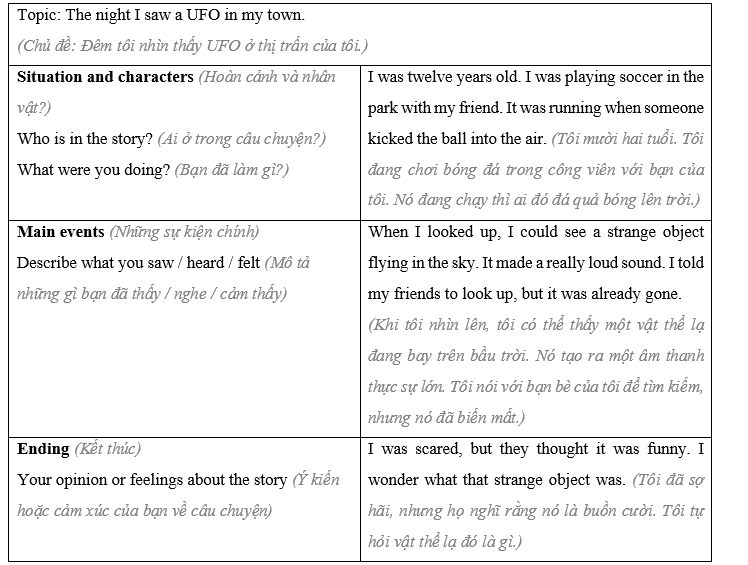 (Bây giờ, hãy sử dụng ghi chú của bạn để viết một đoạn văn tường thuật về trải nghiệm kỳ lạ của bạn. Viết 80 đến 100 từ.)
